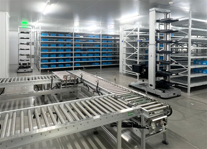 2.全場物料搬運系統(tǒng)及成品輸送系統(tǒng),保障貨物的流暢輸送。利用先進的AGV系統(tǒng),實現(xiàn)貨物的自動搬運;通過全自動料箱機器人系統(tǒng)(CTU),提高料箱搬運的智能化水平。