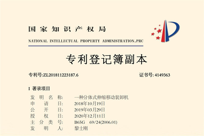 一種分體式伸縮移動裝卸機